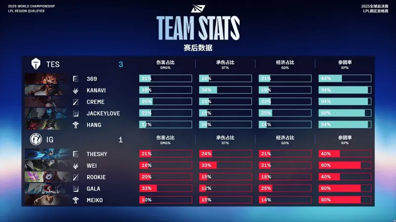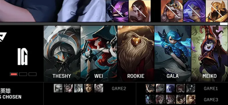 IG选用:TheShy格温、Wei蝎子、Rookie璐璐、GALA女枪、Meiko巴德